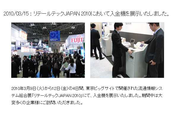2010/03/15 リテールテックJAPAN 2010において入金機を展示いたしました。